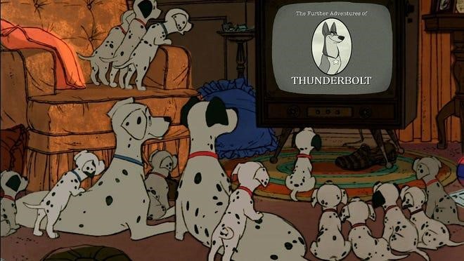 In number 17, Dalmatian Pongo is tired of his bachelor-dog life. He spies lovely Perdita and manoeuvres his master, Roger, into meeting Perdita’s owner, Anita. The owners fall in love and marry, keeping Pongo and Perdita together too. After Perdita gives birth to a litter of 15 puppies, Anita’s old school friend Cruella De Vil wants to buy them all. Roger declines her offer, so Cruella hires the criminal Badun brothers to steal them so she can construct a fur coat.