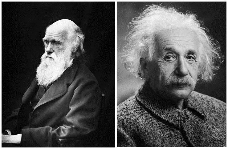 Two of science’s giants, left: Charles Darwin, right: Albert Einstein.
